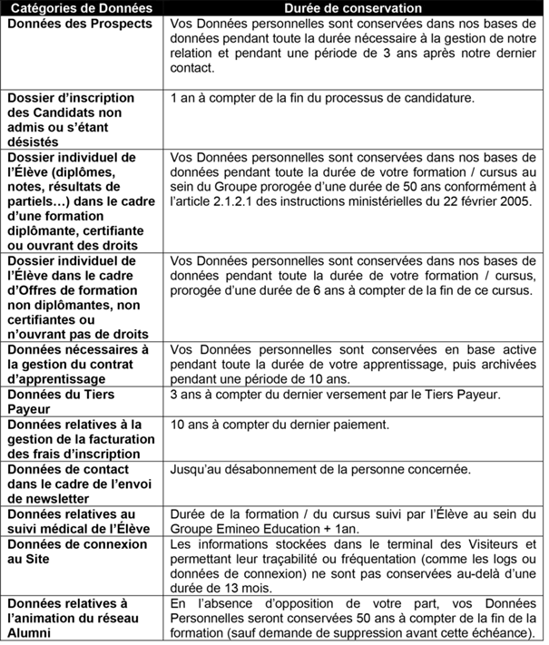 Des espaces interactifs (possibilité de poser des questions dans l’espace contact) sont à la disposition des utilisateurs. Emineo Education se réserve le droit de supprimer, sans mise en demeure préalable, tout contenu déposé dans cet espace qui contreviendrait à la législation applicable en France, en particulier aux dispositions relatives à la protection des données. Le cas échéant, Emineo Education se réserve également la possibilité de mettre en cause la responsabilité civile et/ou pénale de l’utilisateur, notamment en cas de message à caractère raciste, injurieux, diffamant, ou pornographique, quel que soit le support utilisé (texte, photographie…).